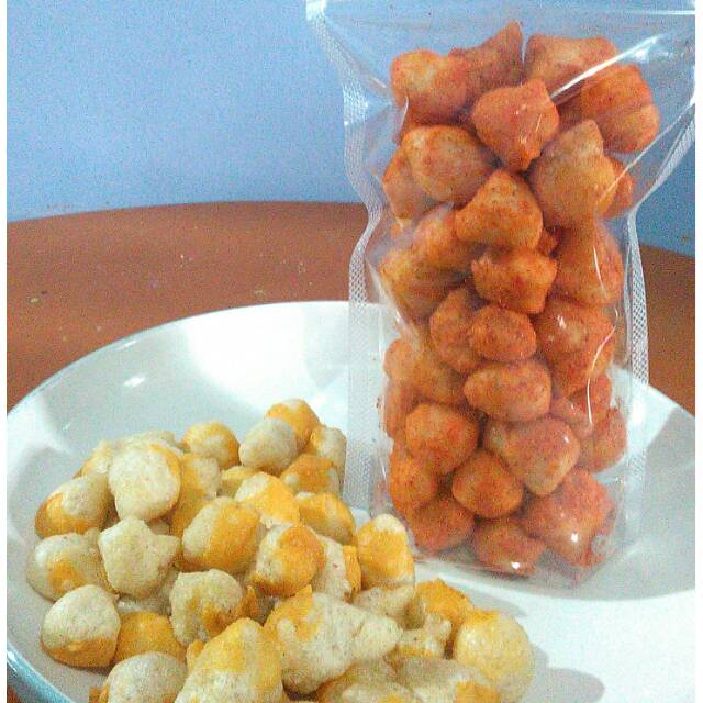 Jajanan kering pedas kekinian. Sebab tidak seperti bakso biasa ya yang memakai kuah. Kue yang dibuat kering dengan taburan meses susu dan keju di dalamnya membuat cita rasa yang enak dan disukai oleh anak anak. Rasa yang didapat dari jajanan ini biasanya sangat pedas namun anda juga dapat menambahkan varian rasa lainnya seperti rasa asin bbq pizza dan rasa rasa yang tidak pedas.